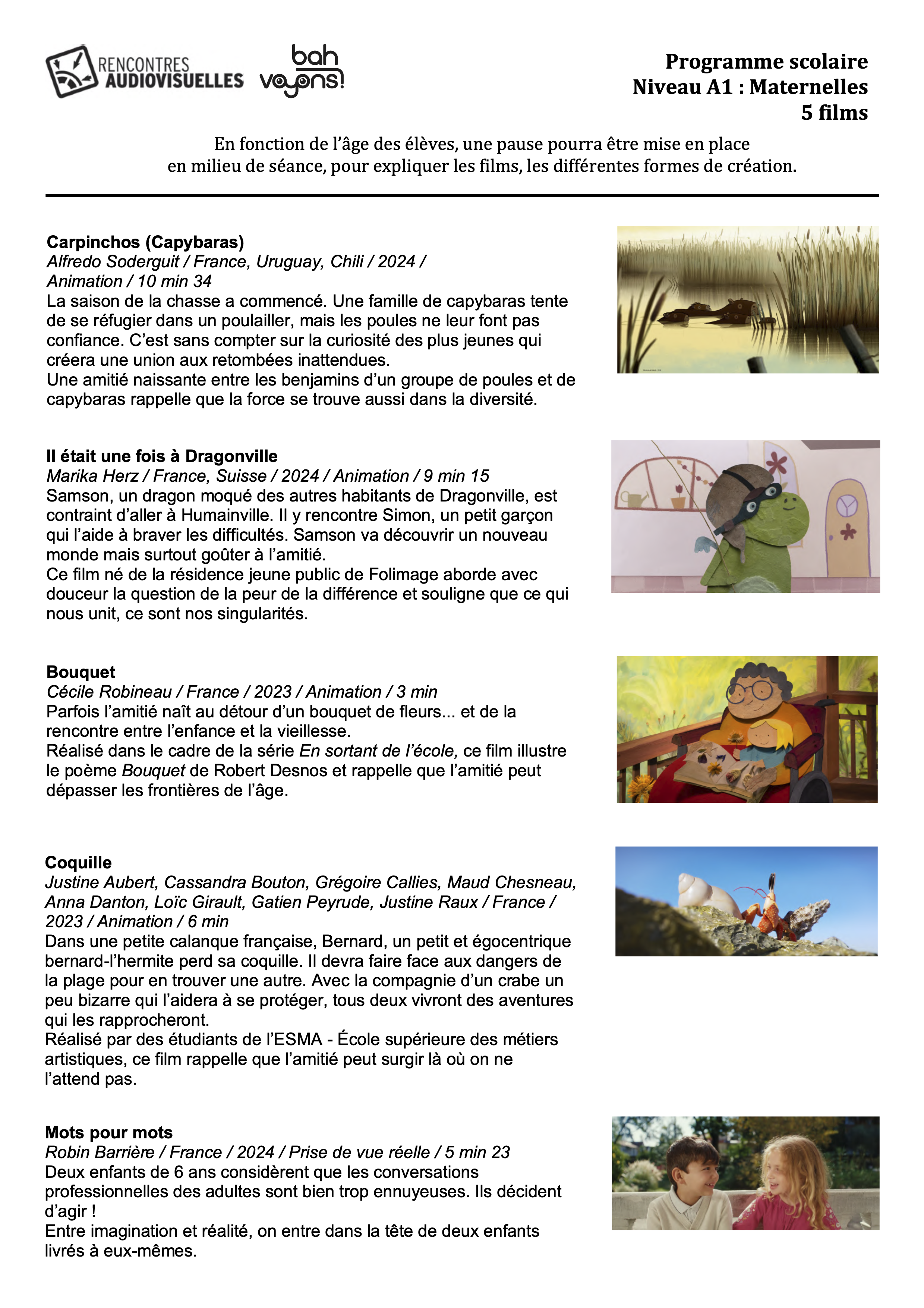 Durée de l’activité : 1h max. (35 min de films + échange avec les enfants)